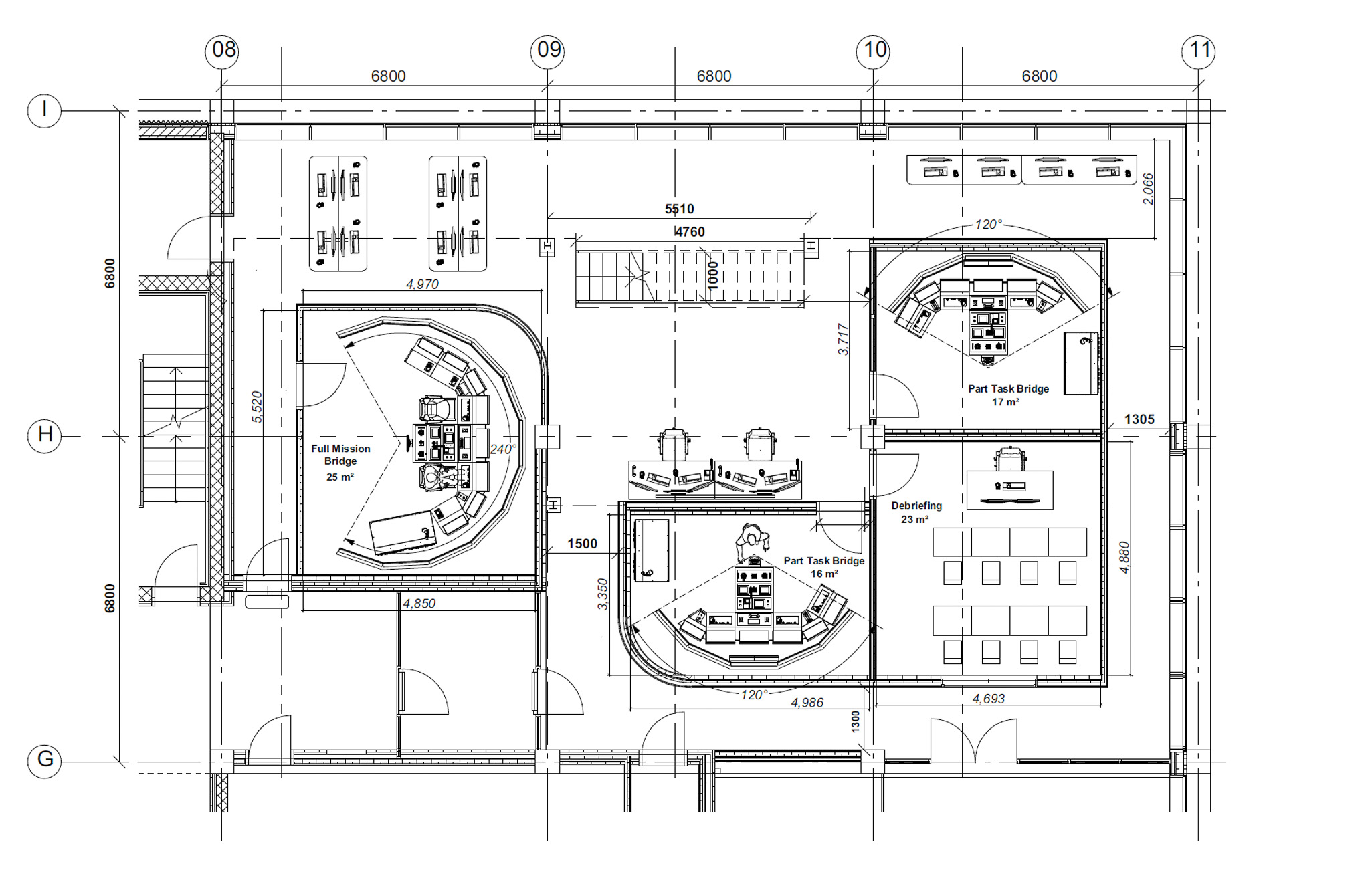 De buede rum opføres med bærende vægge i buet Fermacell, og indrettes med store 75” skærme, som tilsammen skal genskabe oplevelsen af at stå på broen af et skib. Der er hejst tunge stålkonstruktioner ind gennem facaden for at muliggøre den særlige indretning.